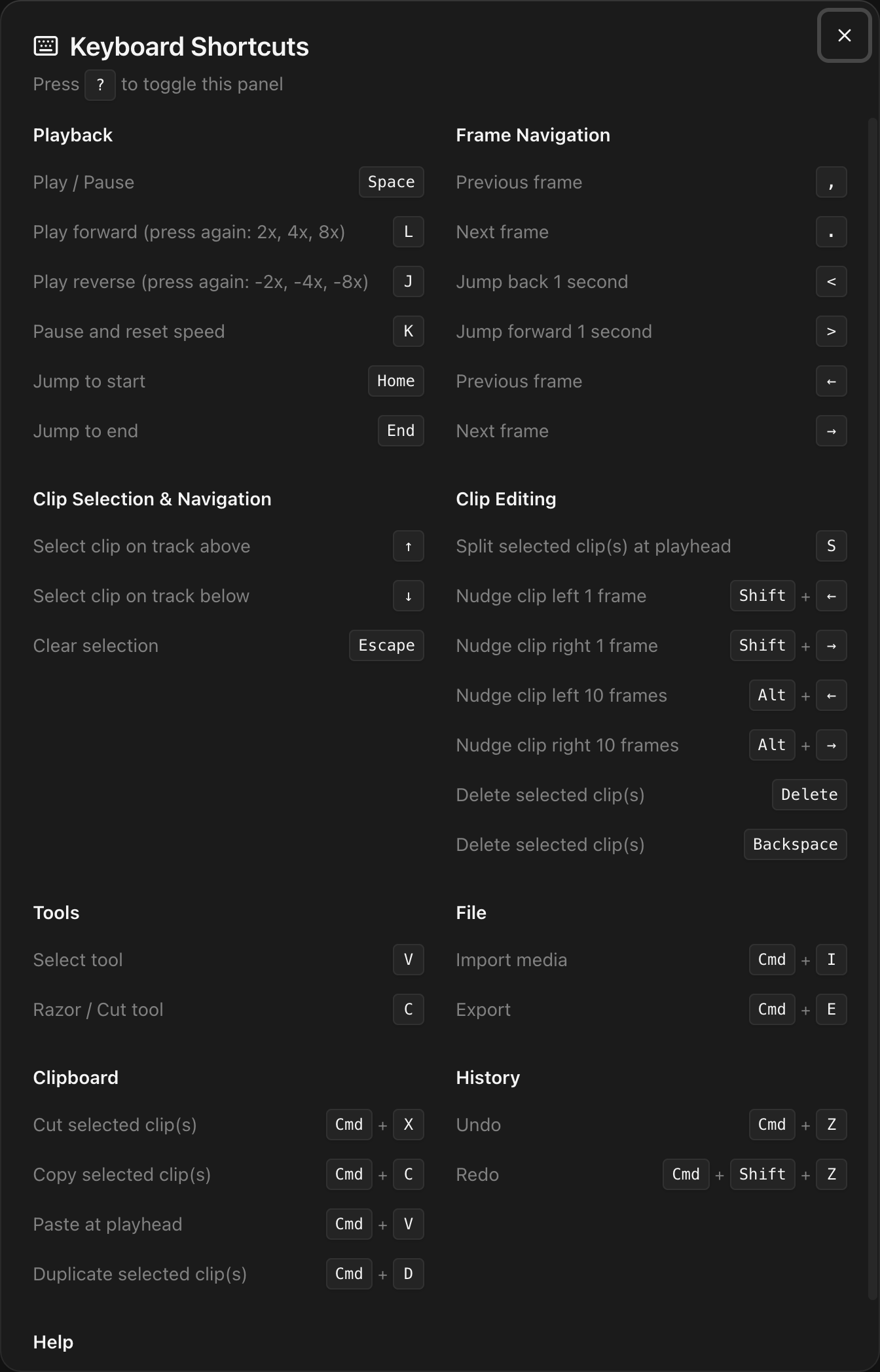 Press ? at any time to open the keyboard shortcuts modal inside the editor.